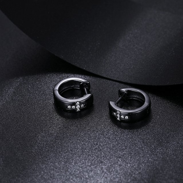 Small Gold Heart Pendant Hoop Earrings with Rhinestone